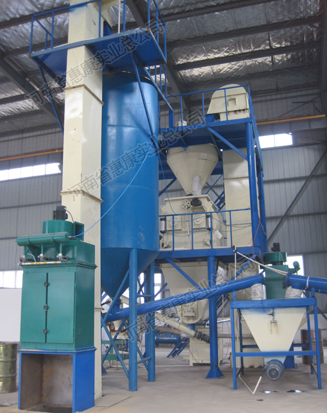 節(jié)能型生產(chǎn)線,由脈沖除塵器、斗式提升機(jī)、雙軸無(wú)重力混合機(jī)(含飛刀組)、成品倉(cāng)(含二次攪拌)、自動(dòng)定量包裝機(jī)(閥口式&敞口式)、鋼架平臺(tái)、空壓機(jī)、氣路系統(tǒng)、電氣控制柜等組成的中型流水作業(yè)體系。 整套流水線,布局合理,結(jié)構(gòu)緊湊,粉塵少,噪音小,運(yùn)行平穩(wěn)。總…