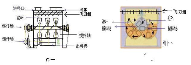 性能特點:減速機帶動雙軸的旋轉(zhuǎn)速度與槳葉的結(jié)構(gòu)會使物料重力減弱 ,隨著重力的消失,各物料存在顆粒大小、比重懸殊的差異在混合過程中消失。激烈的攪拌運動縮短了一次混合的時間,更快速,更高效.(圖十)。