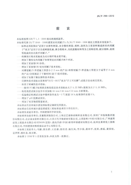 《建筑室內(nèi)用膩子》行業(yè)標(biāo)準(zhǔn)